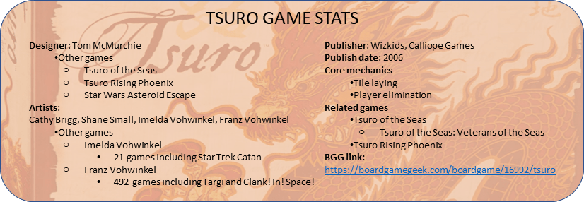 As complexity goes, it’s very entry level. Tsuro is a game that I usually bring out for new players given that it’s quick to pick up and doesn’t last too long. Most people want a second play afterwards. It’s simple and enjoyable which is one of the reasons I play it.